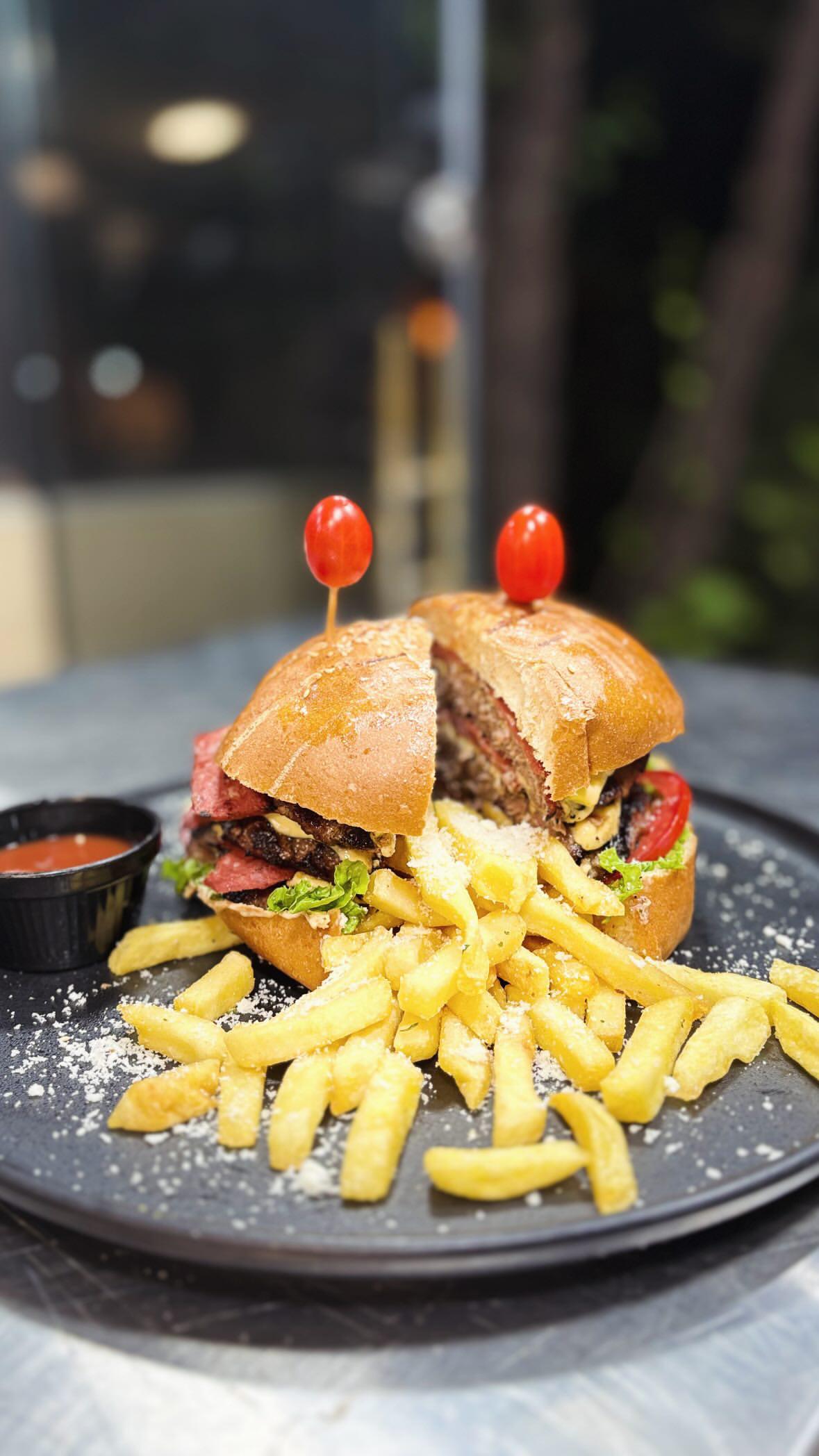 ۱۸۰گرم گوشت برگر، نان دست ساز، سس مخصوص برگر