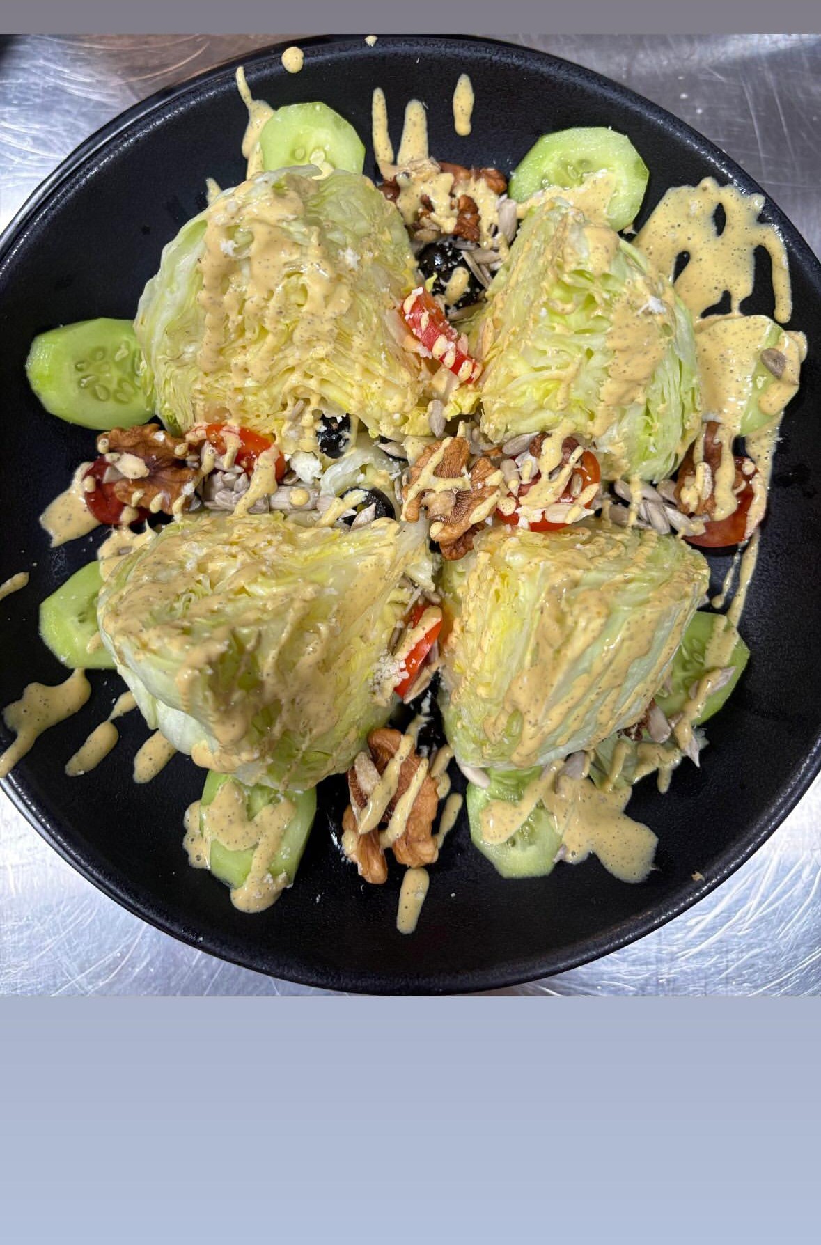 راسته گریلشده، کاهو، گوجه گیلاسی، خیار، گردو کاراملی، سس رژیمی