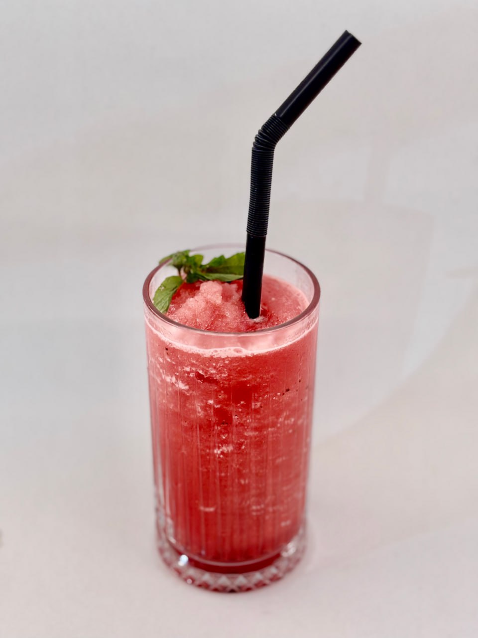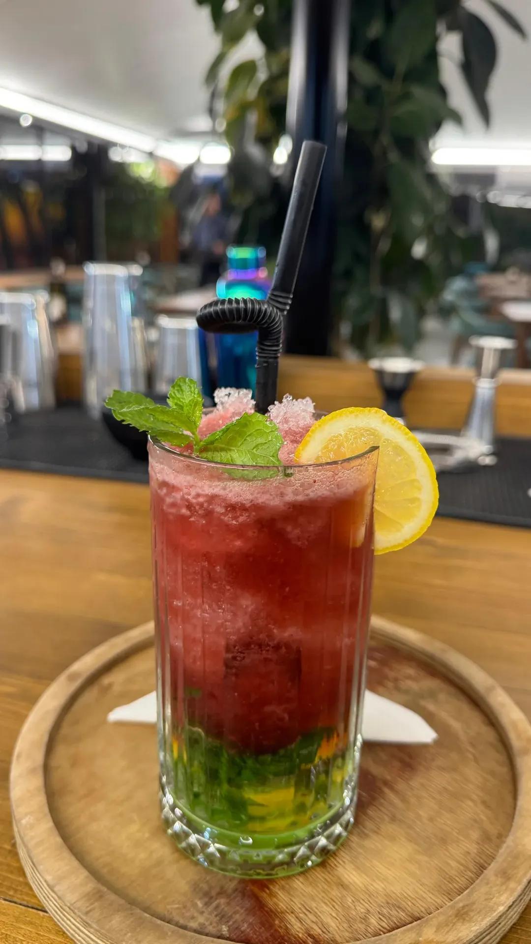 لیموترش، پوره رزبری، نعناع، آب گازدار، یخ
