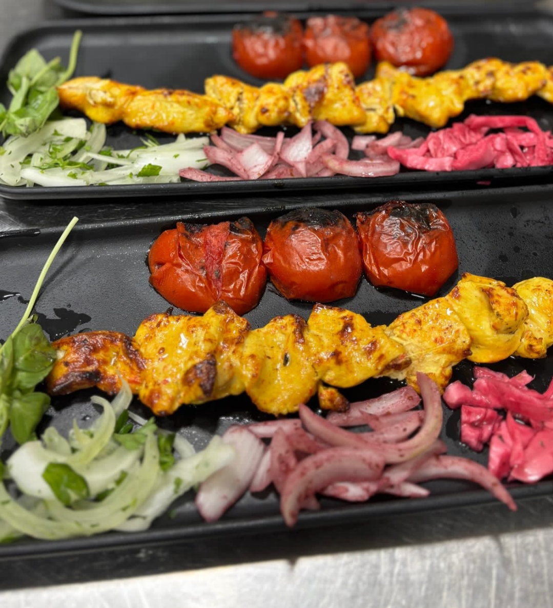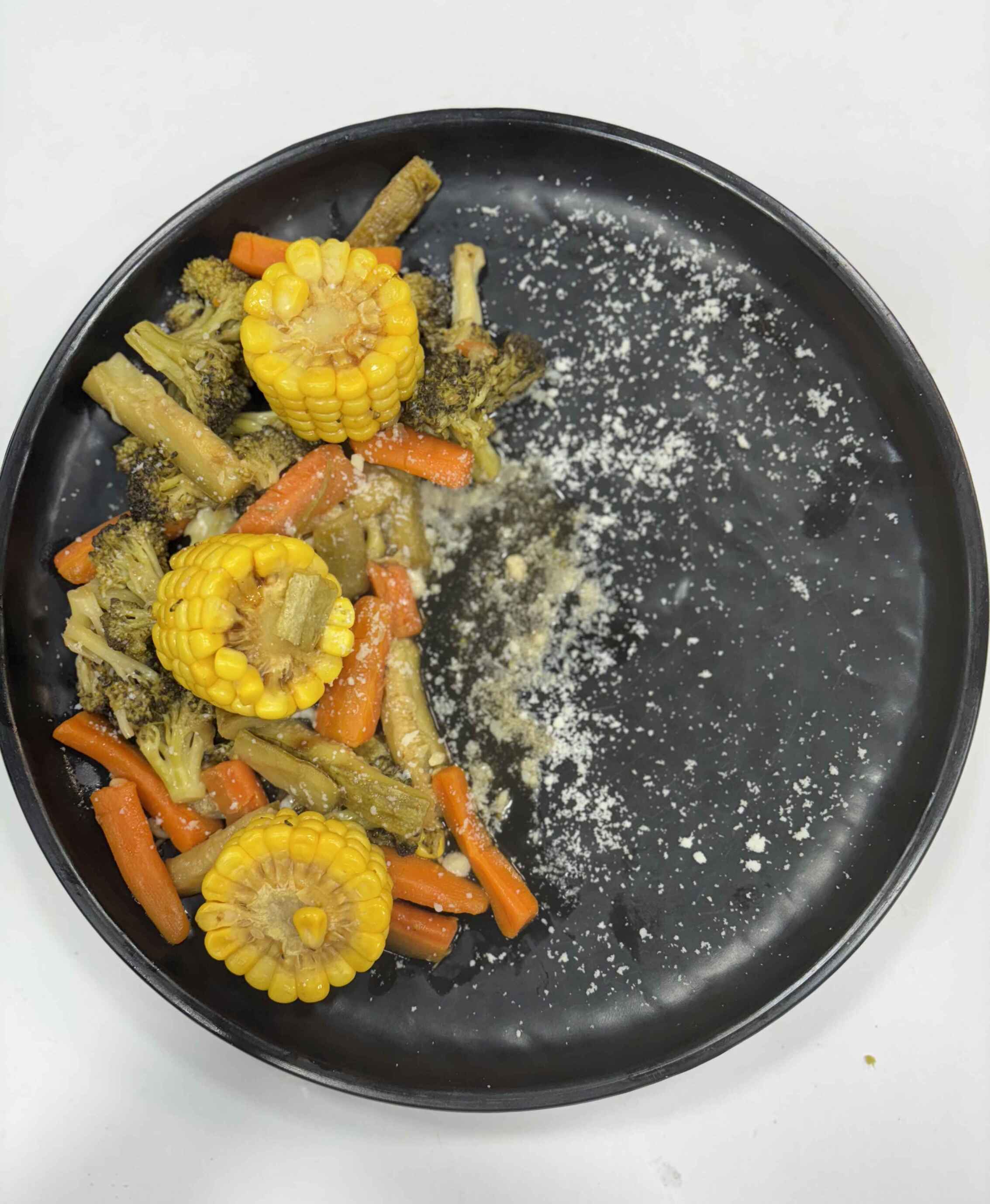 قارچ، بروکلی، کدو، هویج، اسفناج، فلفل دلمهای، همراه با سس مخصوص